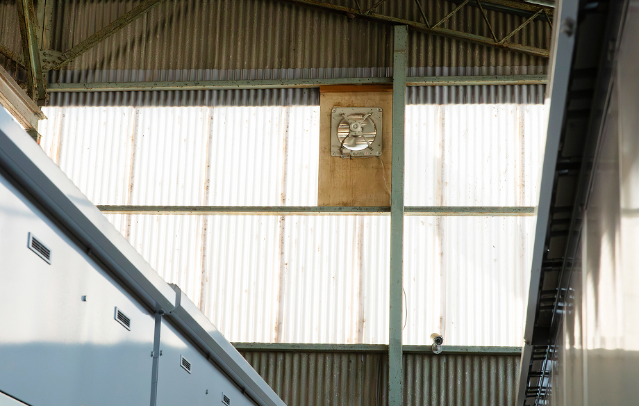 店舗の入口はフェンス、店舗内には換気扇を設置して風通しをよくしています。