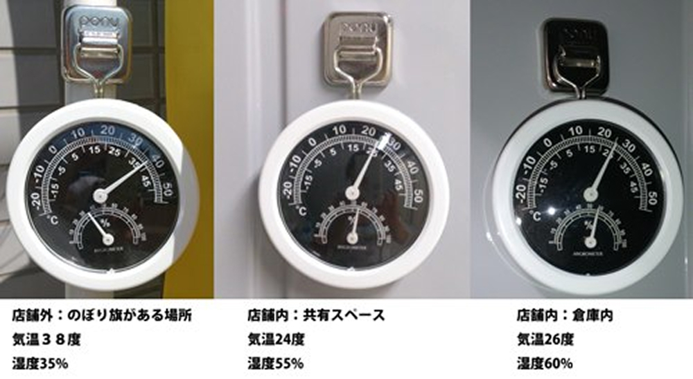 清輝橋店で温度を測定した際の結果です(2019年6月)