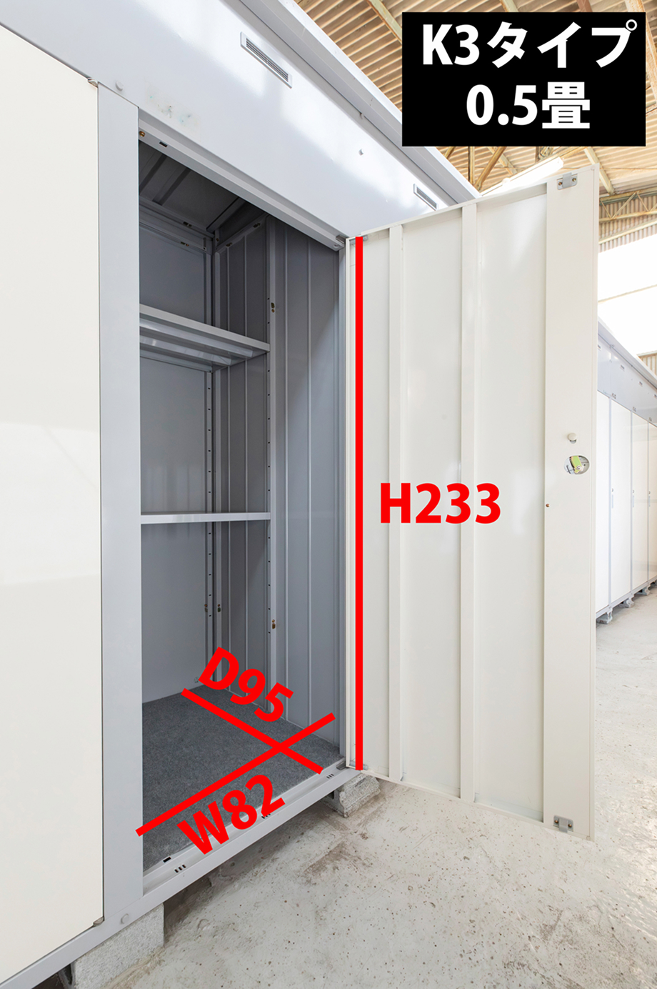 屋根付きの建物内にトランクルームを設置しているため
